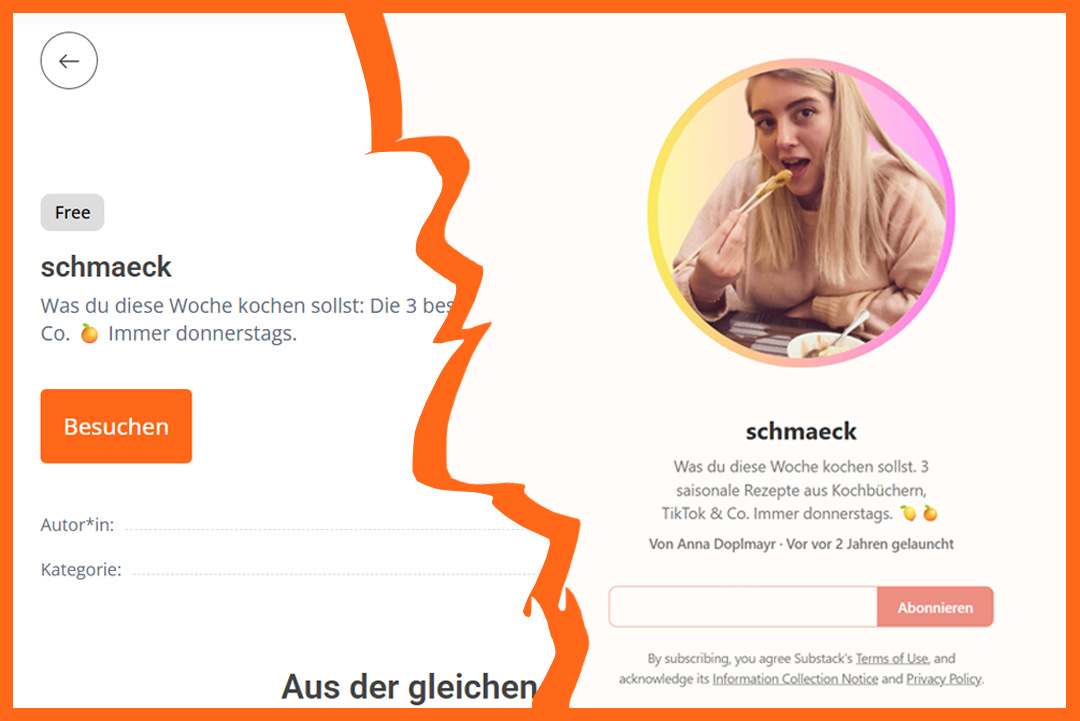 Food-Bloggerin Anna Doplmayr puts the Österreich in „Substacks aus Deutschland, Österreich und der Schweiz“. Sie ist seit 2024 auf Substack. Warum sie ihr einjähriges Plattform-Sabbatical heute als Fehler betrachtet, verrät sie unten.
